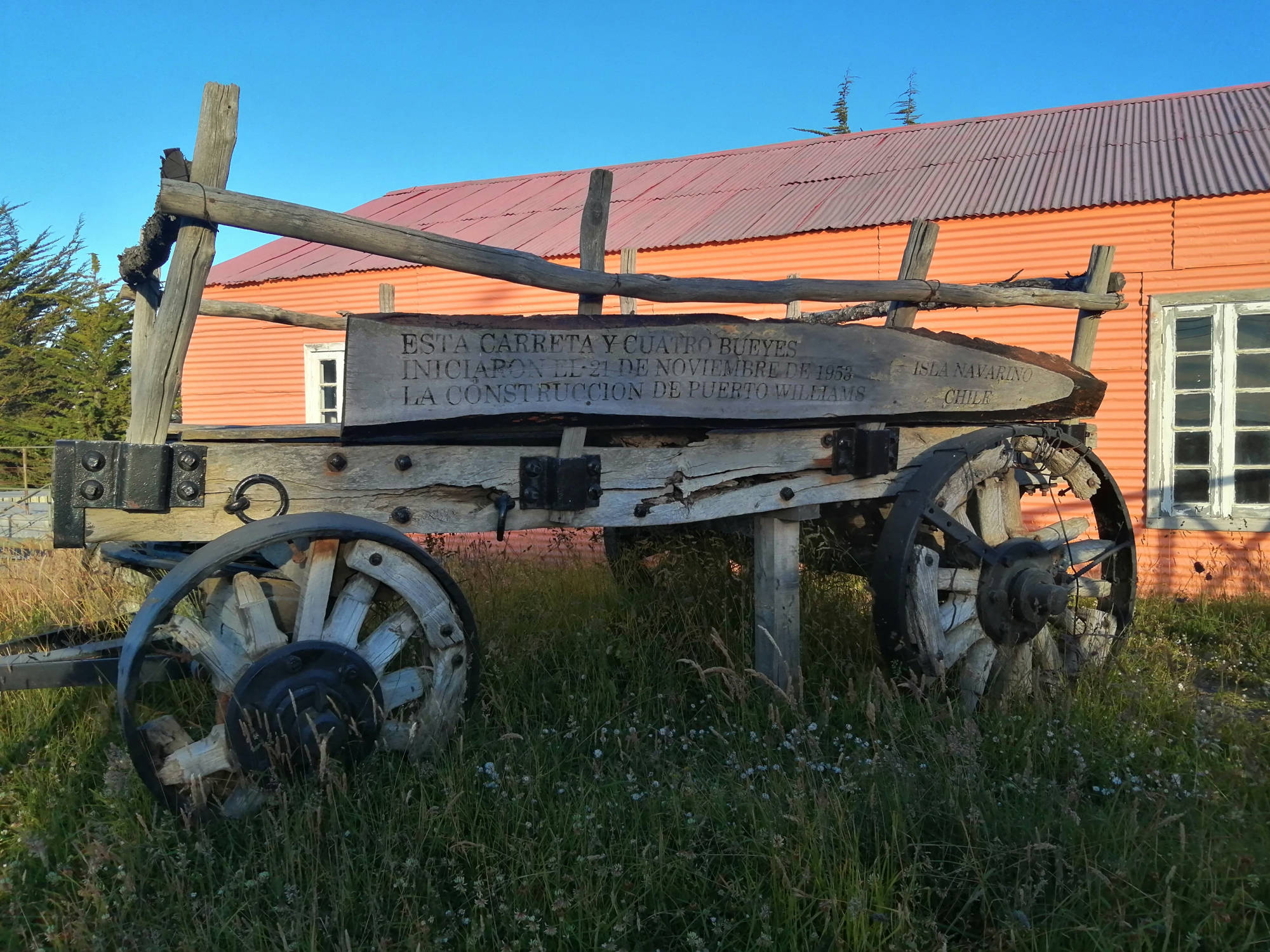 Carreta histórica que ayudó a iniciar la fundación de ex Puerto Luisa, actual ciudad de Puerto Williams, el 21 de noviembre de 1953.