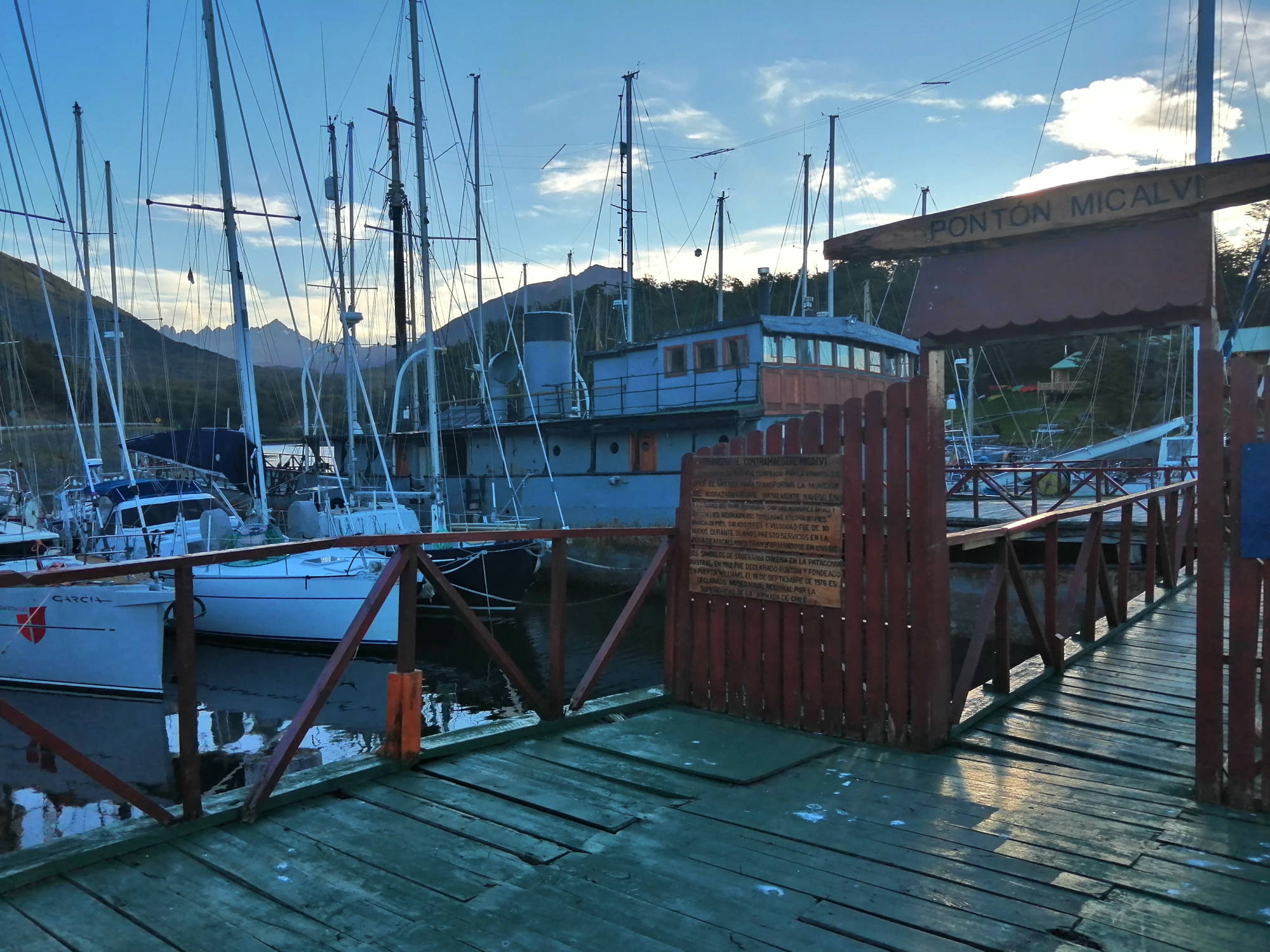 En este club náutico atracan naves provenientes de todo el mundo, antes de iniciar el trayecto por el Cabo de Hornos, aprovechando la terraza natural del canal Beagle y el entorno montañoso de Isla Navarino.