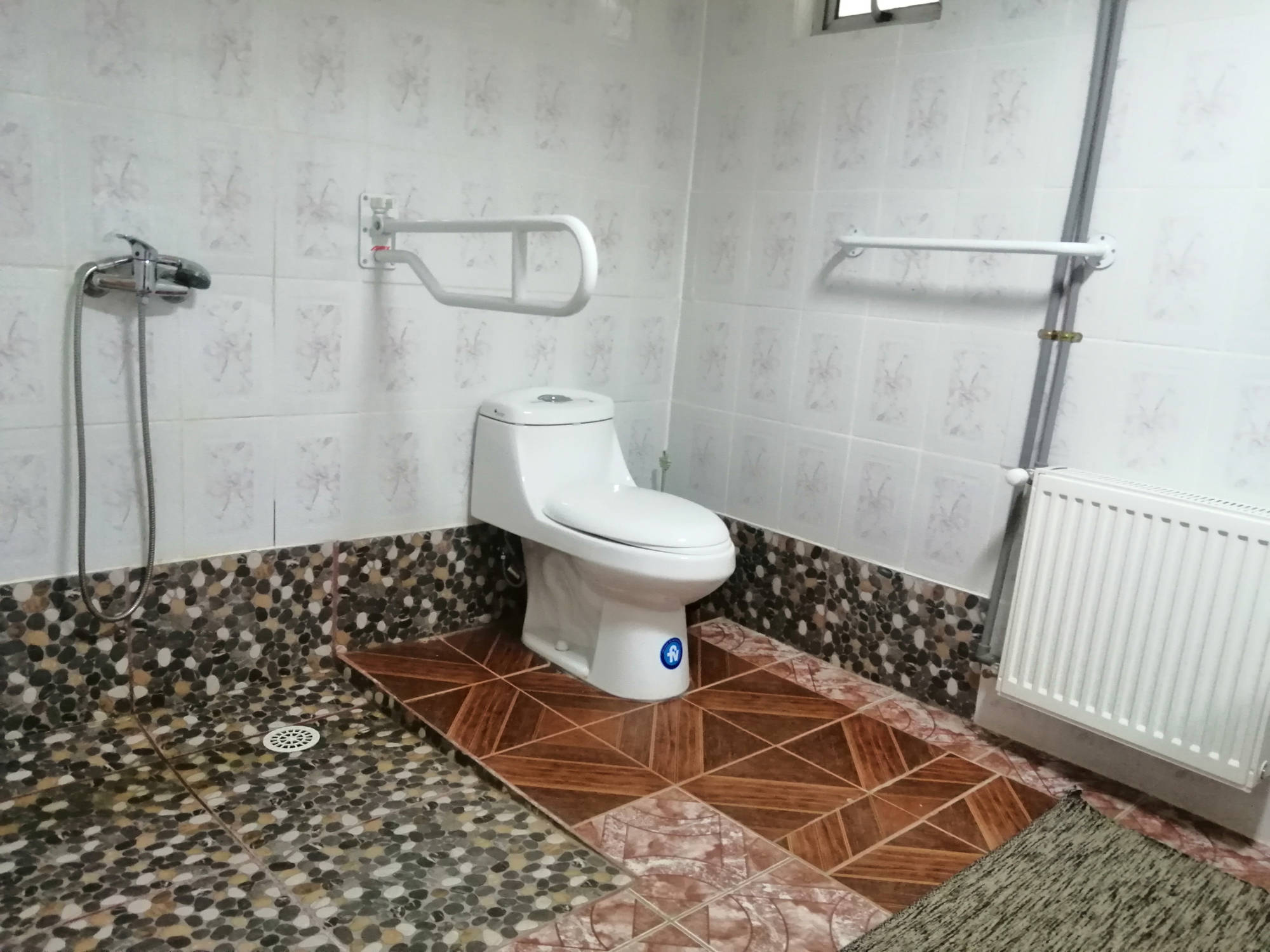 Cómoda habitación con cama europea, ademas cuenta con baño privado especialmente acondicionado para uso con silla de ruedas, calefacción central, televisión por cable y wifi.